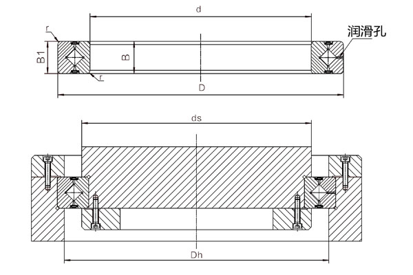 • XRU系列(安裝孔、高剛性)交叉滾子軸承(替代THK公司RU系列;IKO公司CRBF系列)