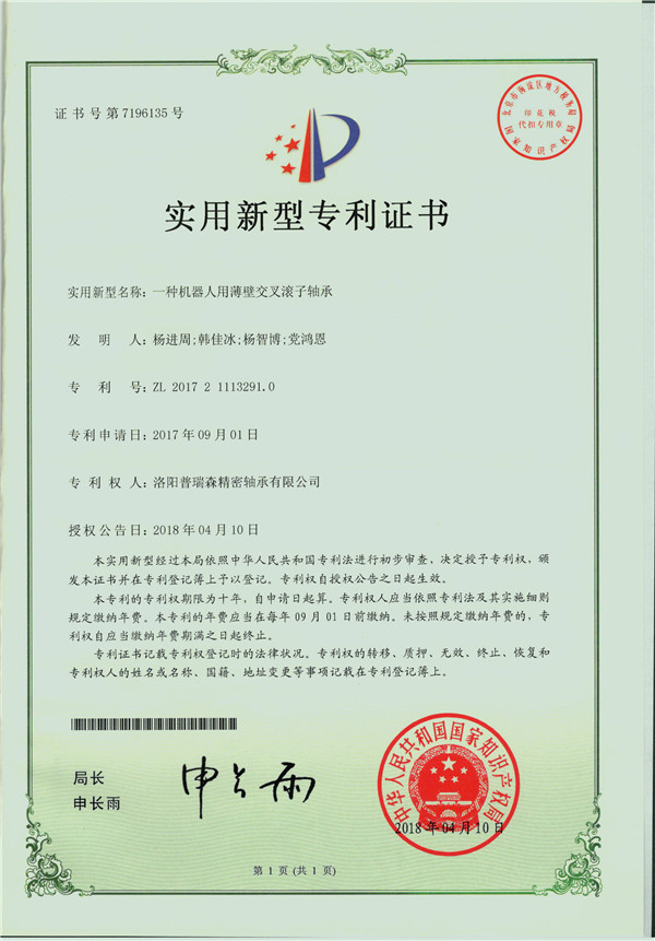 洛陽普瑞森精密軸承有限公司(PRS)是業從事精密軸承、特種軸承的生產與研發為一體的高新技術企業。公司自2003年成立至今,致力于非標準、高精度種軸承的開發與生產,力爭在特種軸承領域內能夠替代國外產品。   洛陽普瑞森精密軸承有限公司(PRS)主要產品有精密交叉圓柱滾子軸承、精密交叉圓錐滾子軸承、等截面薄壁球軸承、YRT轉臺軸承、ZKLDF高精度推力角接觸球軸承、精密角接觸球軸承、機器人用軸承、鋼絲跑道軸承等,精度可以達到P…